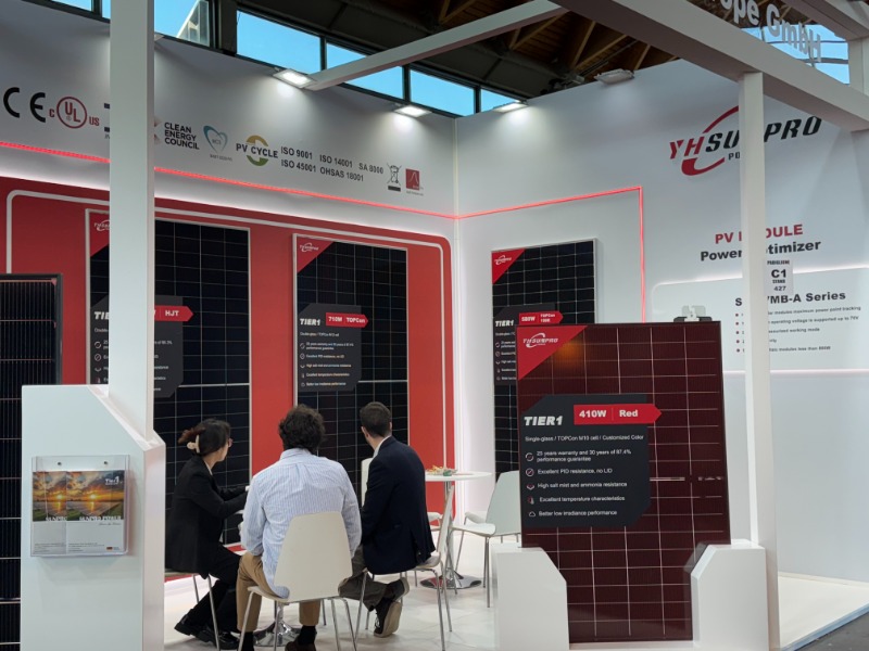 Sunpro trajo sus últimos módulos fotovoltaicos rectangulares a la cabina del salón C1-427, con el objetivo de inyectar energía verde en esta encantadora tierra de Italia. SunPro tiene como objetivo ayudar a Italia a romper las limitaciones de la energía tradicional, acelerar el proceso local de transformación de energía limpia, de modo que cada rayo de luz solar puede convertirse de manera precisa y eficiente en electricidad que ilumine la ciudad e impulse el desarrollo, allanando un sólido "camino brillante" para que Italia se mueva hacia un futuro sostenible.